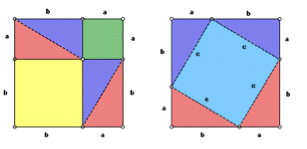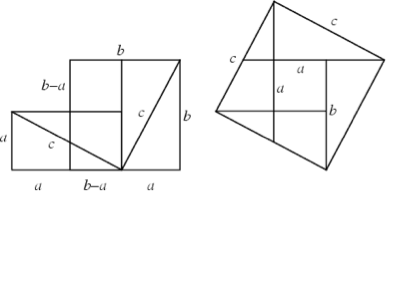💀 Large square (with an area of c squared) made of 4 right-angled triangles, fitted around a small central square.