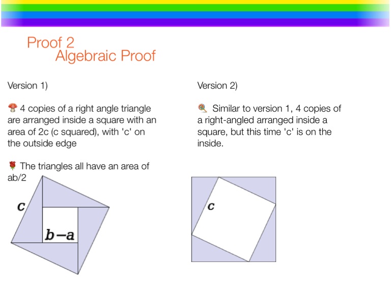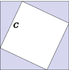 🍄 4 copies of a right angle triangle are arranged inside a square with an area of 2c (c squared), with 'c' on the outside edge