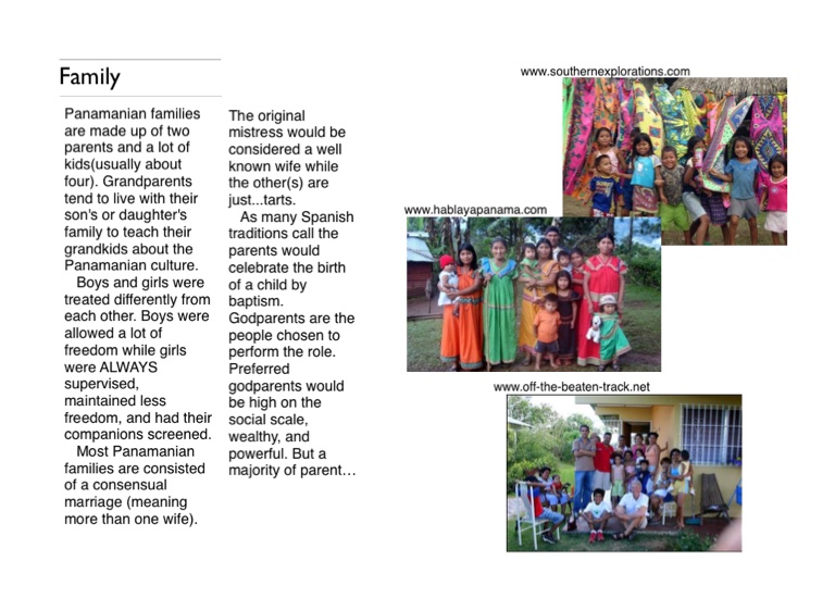 Most Panamanian families are consisted of a consensual marriage (meaning more than one wife).