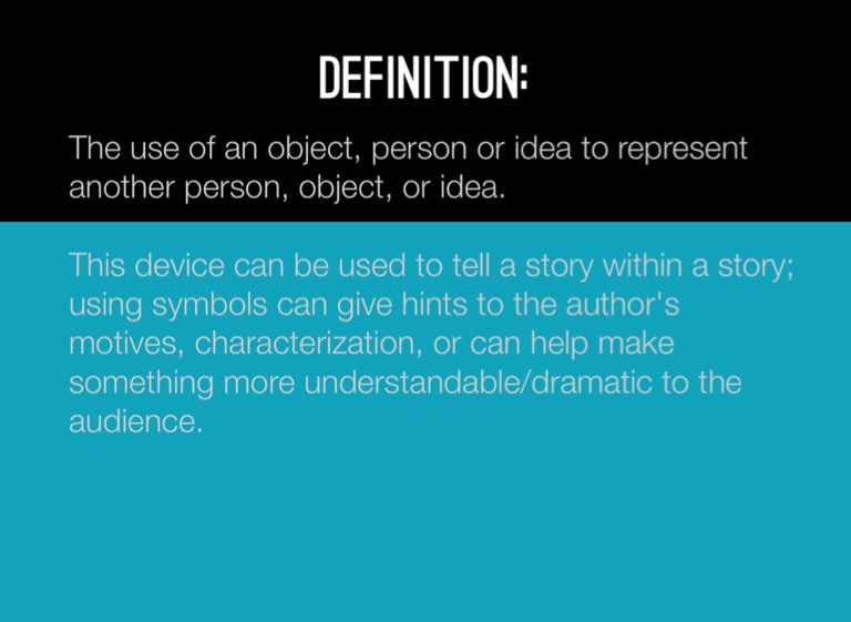 This device can be used to tell a story within a story; using symbols can give hints to the author's motives, characterization, or can help make something more understandable/dramatic to the audience.