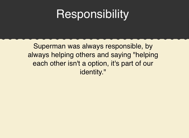 Superman was always responsible, by always helping others and saying "helping each other isn't a option, it's part of our identity."
