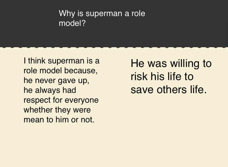 I think superman is a role model because, he never gave up, he always had respect for everyone whether they were mean to him or not.