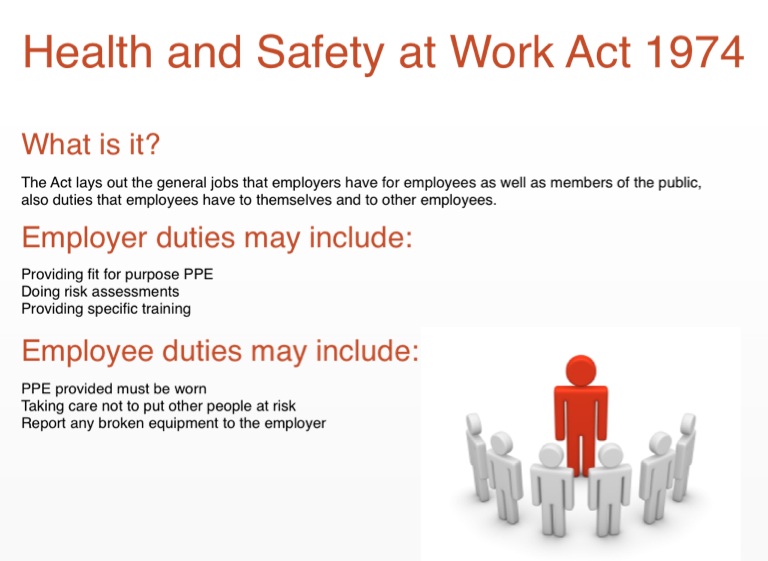 The Act lays out the general jobs that employers have for employees as well as members of the public, also duties that employees have to themselves and to other employees.