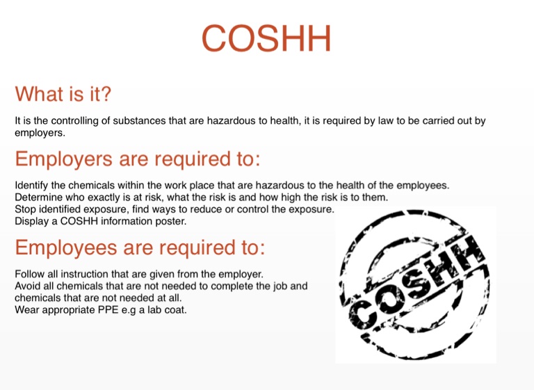 It is the controlling of substances that are hazardous to health, it is required by law to be carried out by employers.