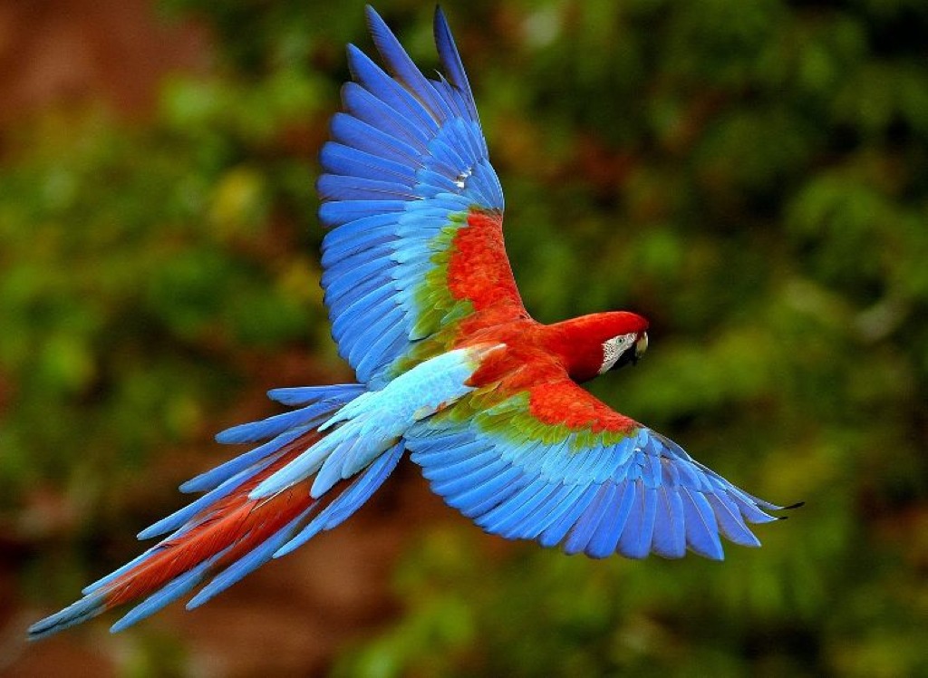 The exotic bird flew over the jungle trees with grace.