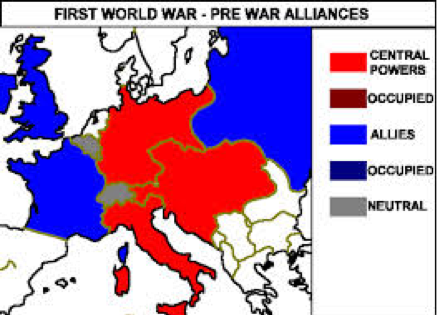 Another major alliance was the central Powers. This alliance was composed of Germany, Austria-Hungary,and Italy, however, Italy eventually dropped out and joined the Allies.