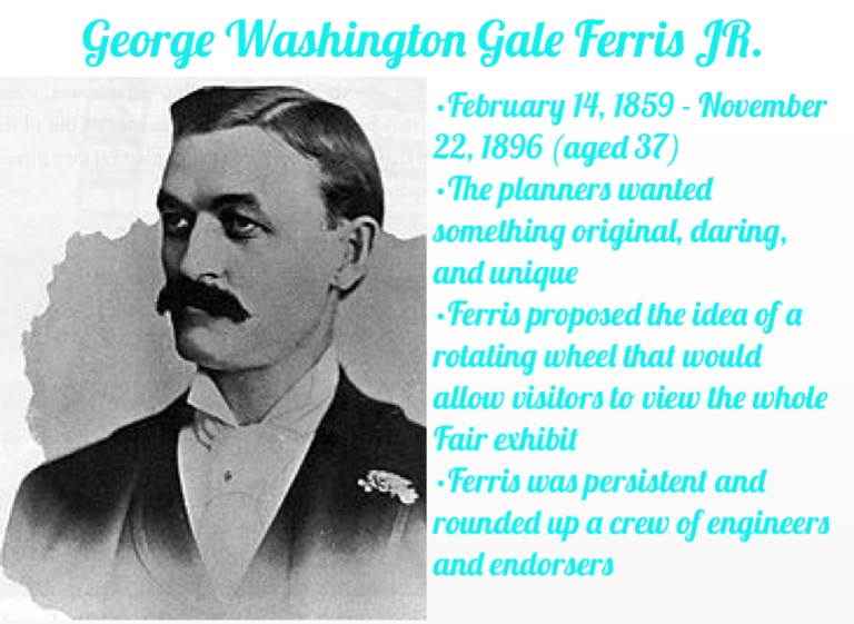 •Ferris proposed the idea of a rotating wheel that would allow visitors to view the whole Fair exhibit