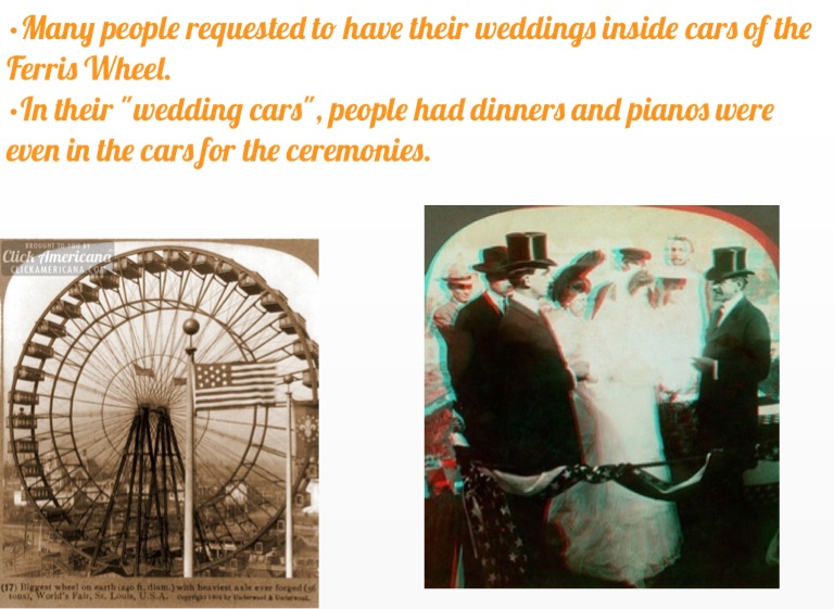 •Many people requested to have their weddings inside cars of the Ferris Wheel.