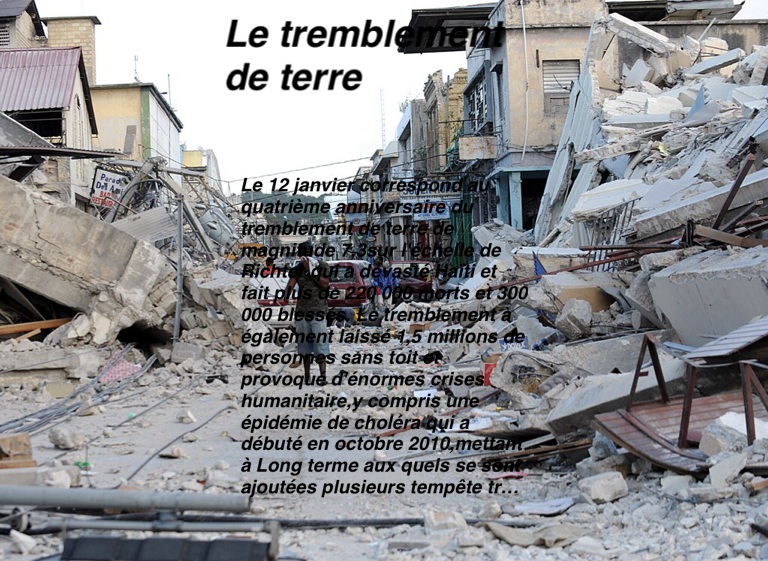 Le 12 janvier correspond au quatrième anniversaire du tremblement de terre de magnitude 7,3sur l'échelle de Richter qui a dévasté Haïti et fait plus de 220 000 morts et 300 000 blessés. Le tremblement à également laissé 1,5 millions de personnes sans toit et provoqué d'énormes crises humanitaire,y compris une épidémie de choléra qui a débuté en octobre 2010,mettant à Long terme aux quels se sont ajoutées plusieurs tempête tropical