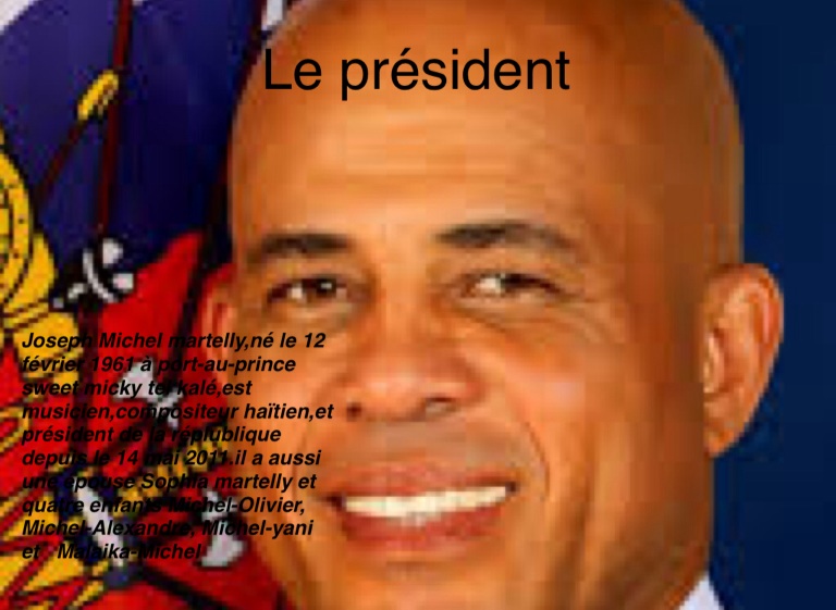 Joseph Michel martelly,né le 12 février 1961 à port-au-prince sweet micky tel kalé,est musicien,compositeur haïtien,et président de la réplublique depuis le 14 mai 2011.il a aussi une épouse Sophia martelly et quatre enfants Michel-Olivier, Michel-Alexandre, Michel-yani et Malaika-Michel