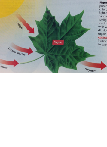 During photosynthesis cells capture energy from sunlight and use it to change carbon dioxide gas and water into oxygen and sugars,such as glucose.