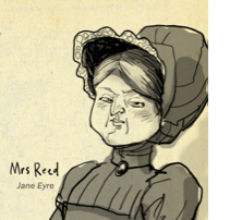 Mrs. Reed is Jane's aunt by marriage (her husband was Jane's mother's brother). She is a cold and traditional Victorian era woman. As seen in her treatment of Jane, she resents her. Possibly because, she feels Jane should be more respectful to her, “Be seated somewhere; and until you can speak pleasantly, remain silent," (Brontë, 12). Mrs. Reed however, is a hypocrite, as she expects Jane to be polite and well-mannered but doesn't expect the same from her own children.