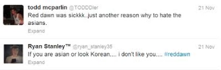 Many racist tweets were put out on twitter going towards Asians just because of the movie Red Dawn which shows North Korea invading the United States.
