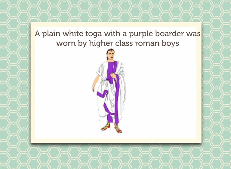 A plain white toga with a purple boarder was worn by higher class roman boys