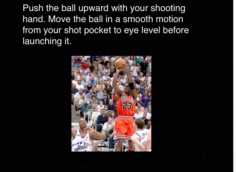 Push the ball upward with your shooting hand. Move the ball in a smooth motion from your shot pocket to eye level before launching it.