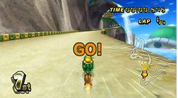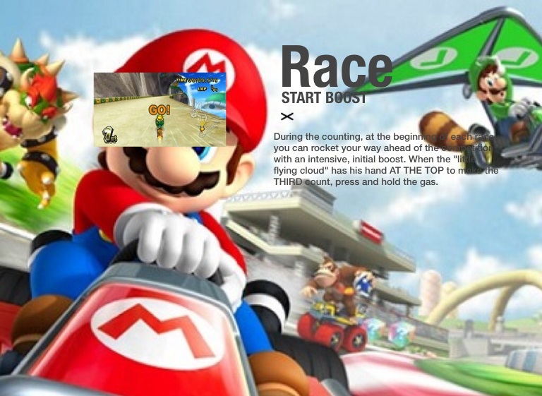 During the counting, at the beginning of each race, you can rocket your way ahead of the competition with an intensive, initial boost. When the "little flying cloud" has his hand AT THE TOP to make the THIRD count, press and hold the gas.