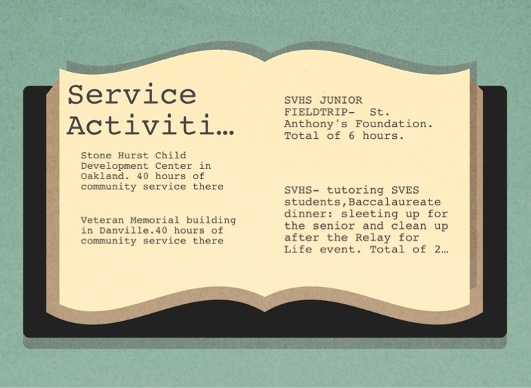 Stone Hurst Child Development Center in Oakland. 40 hours of community service there