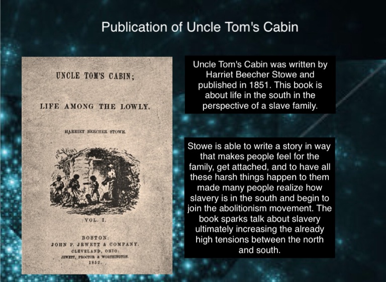 Stowe is able to write a story in way that makes people feel for the family, get attached, and to have all these harsh things happen to them made many people realize how slavery is in the south and begin to join the abolitionism movement. The book sparks talk about slavery ultimately increasing the already high tensions between the north and south.