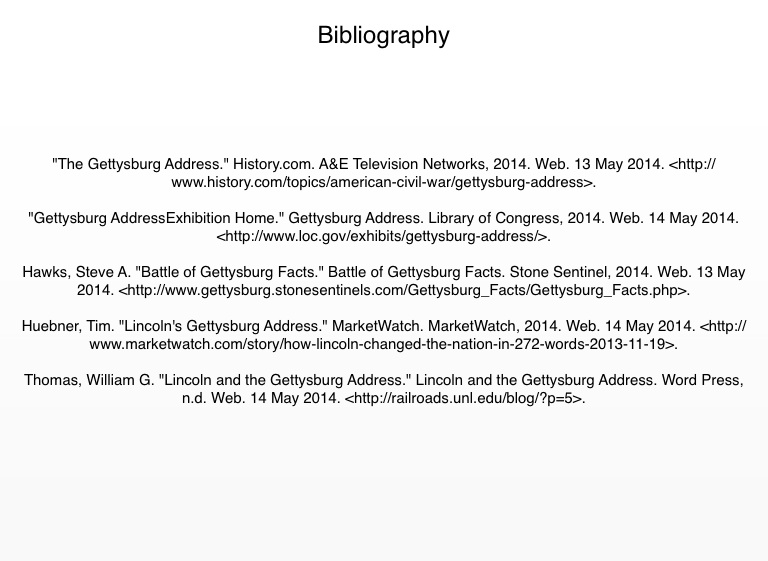 "The Gettysburg Address." History.com. A&E Television Networks, 2014. Web. 13 May 2014.