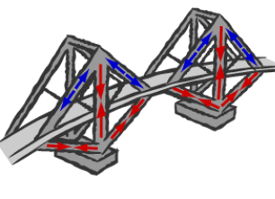Compression and Tension- Every bar in this cantilever bridge experiences either a pushing or pulling force. The bars rarely bend. This is why cantilever bridges can span farther than beam bridges.f