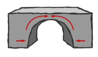 Compression- The arch is squeezed together, and this squeezing force is carried outward along the curve to the supports at each end. The supports, called abutments, push back on the arch and prevent the ends of the arch from spreading apart.