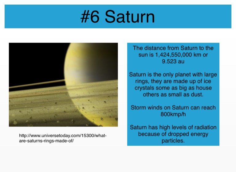 Saturn is the only planet with large rings, they are made up of ice crystals some as big as house others as small as dust.