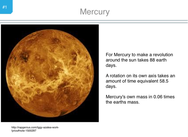 A rotation on its own axis takes an amount of time equivalent 58.5 days.