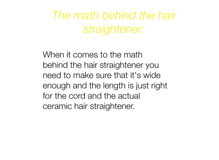 When it comes to the math behind the hair straightener you need to make sure that it's wide enough and the length is just right for the cord and the actual ceramic hair straightener.