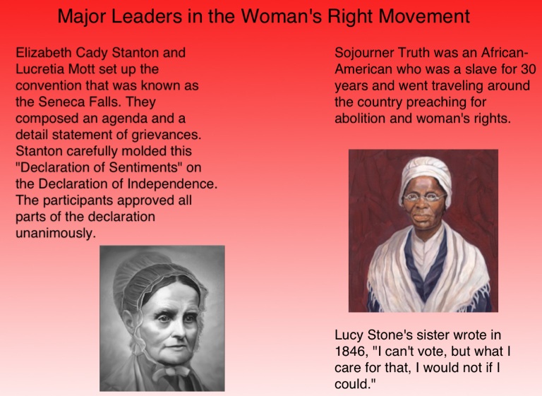 Elizabeth Cady Stanton and Lucretia Mott set up the convention that was known as the Seneca Falls. They composed an agenda and a detail statement of grievances. Stanton carefully molded this "Declaration of Sentiments" on the Declaration of Independence. The participants approved all parts of the declaration unanimously.
