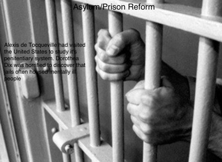 Alexis de Tocqueville had visited the United States to study it's penitentiary system. Dorothea Dix was horrified to discover that jails often housed mentally ill people