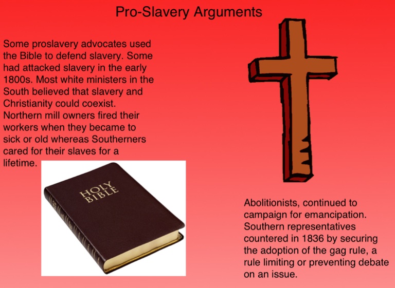 Some proslavery advocates used the Bible to defend slavery. Some had attacked slavery in the early 1800s. Most white ministers in the South believed that slavery and Christianity could coexist. Northern mill owners fired their workers when they became to sick or old whereas Southerners cared for their slaves for a lifetime.