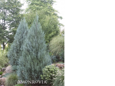 The juniper moonglow tree maintains its foliage year-round, making it an evergreen tree. The tree sports blue berries from late spring through winter. The leaves are soft textured, scale-like silvery blue needles.