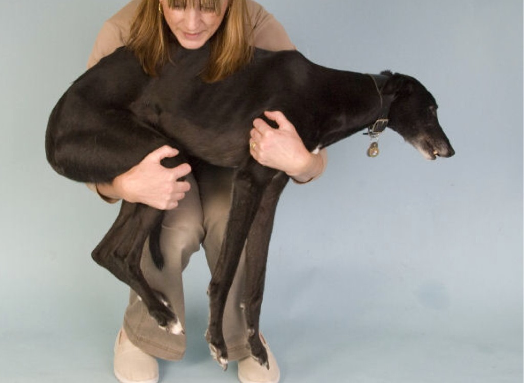 He hoisted the dog into the boat.