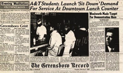 - On Febuary 1, 1960 four African American college students oreder doughnuts and coffee at a restaurant named Woolsworth's lunch counter in Greensboro, North Carolina, which at the time this was a white only restaurant at the time.
