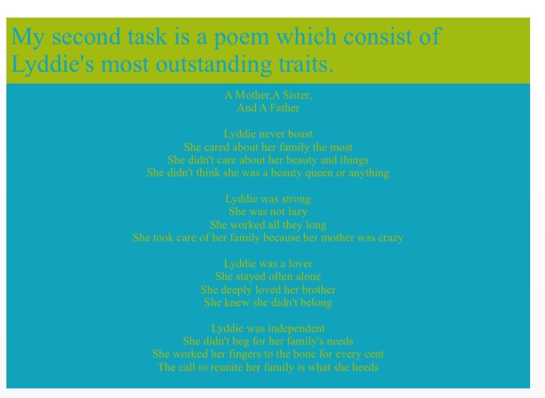 My second task is a poem which consist of Lyddie's most outstanding traits.