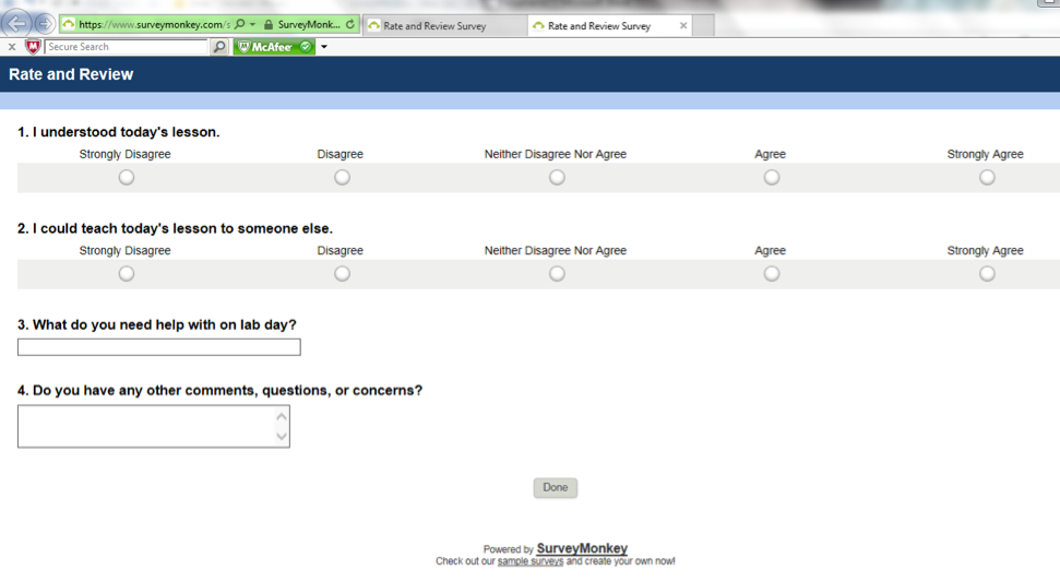 Use Survey Monkey to allow students to respond to polls and give feedback about instruction. In this example, students are asked to reflect on their own learning.