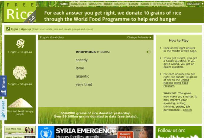 Send students who struggle with vocabulary to this fun game. Students who play this game will be feeding hungry people around the world while building a stronger vocabulary.
