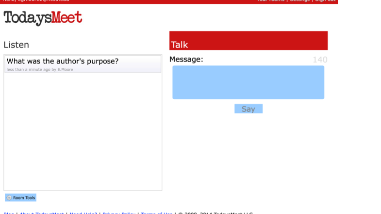 Assign a topic for discussion in small groups. Have one member of the group record the ideas of the group and submit through Today’s Meet. Display the responses of all the small groups on the large screen to encourage class discussion.