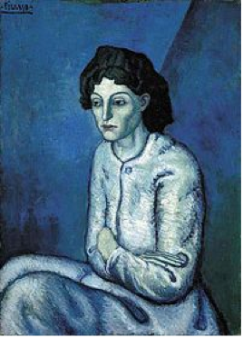 "Femme aux Bras Croisés" represents a woman haunted and possessed by her own loneliness. This conclusion can be drawn from, for one thing, the depressing blue coloring. It's cold and being cold is often associated with being alone, therefore being lonely. Also, the figure has a blank yet solemn expression on her face; she's staring off into nothingness. Another feature pointing to her loneliness is the way she is clutching, or hugging, herself. She's wishing she could be holding someone else and trying to control her sadness.