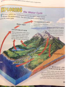 In the water cycle, water moves from bodies of water, land, and living things on Earth's surface to the atmosphere