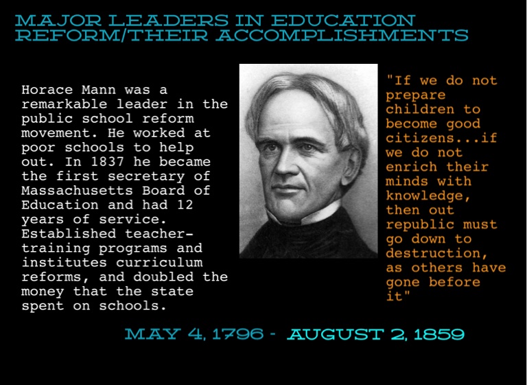 Major leaders in education reform/their accomplishments
