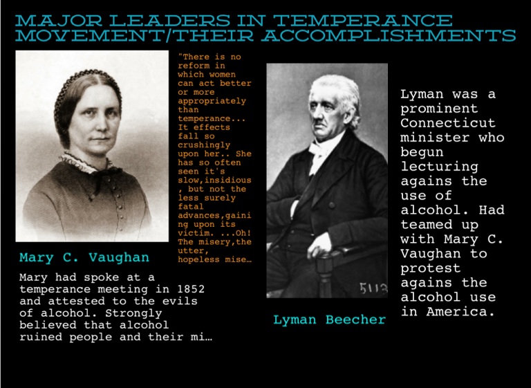 Major leaders in temperance movement/their accomplishments