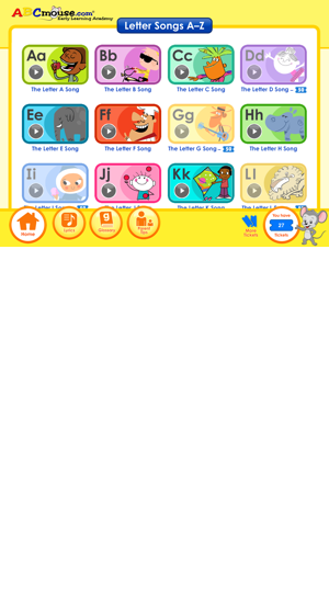 There is a video for each alphabet letter. The tunes are catchy with great graphics. They include words with the targeted sound. Kids love them.