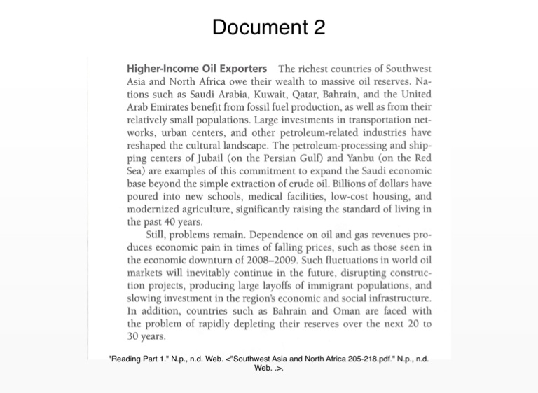 "Reading Part 1." N.p., n.d. Web. <"Southwest Asia and North Africa 205-218.pdf." N.p., n.d. Web. .>.