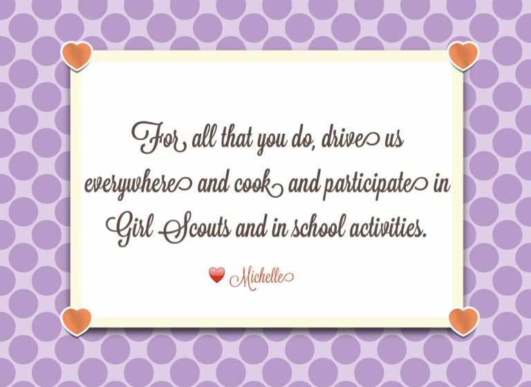 For all that you do, drive us everywhere and cook and participate in Girl Scouts and in school activities.