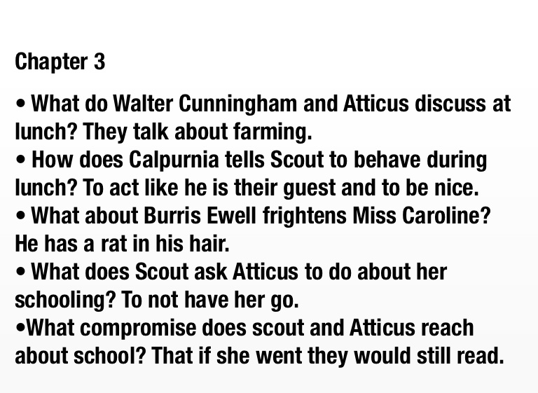 • What does Scout ask Atticus to do about her schooling? To not have her go.