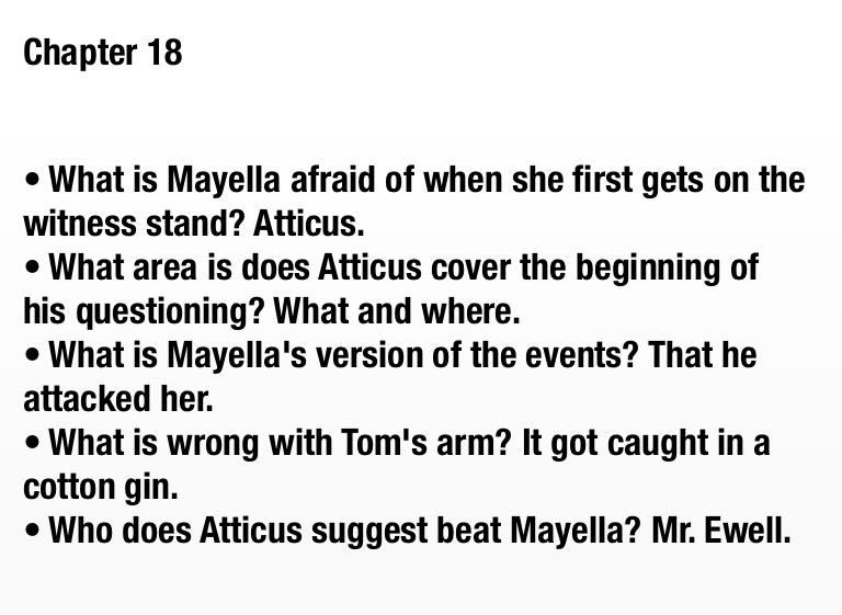 • What is Mayella afraid of when she first gets on the witness stand? Atticus.