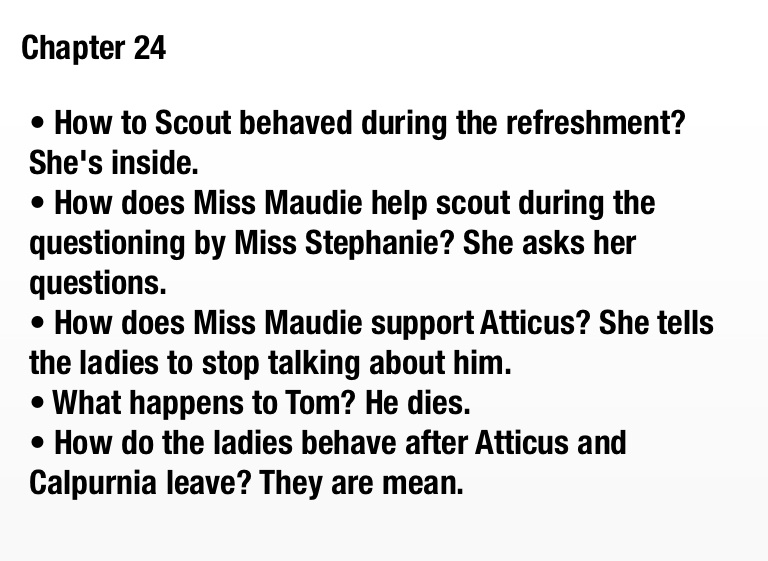 • How does Miss Maudie support Atticus? She tells the ladies to stop talking about him.