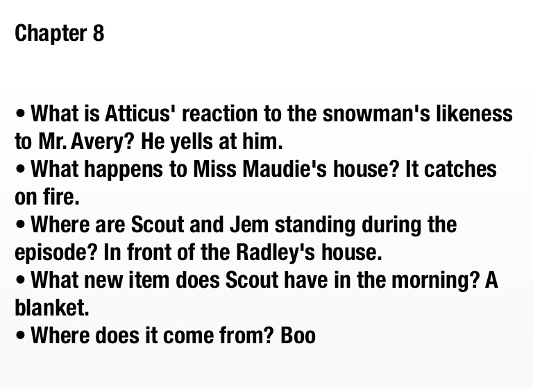 • What is Atticus' reaction to the snowman's likeness to Mr. Avery? He yells at him.