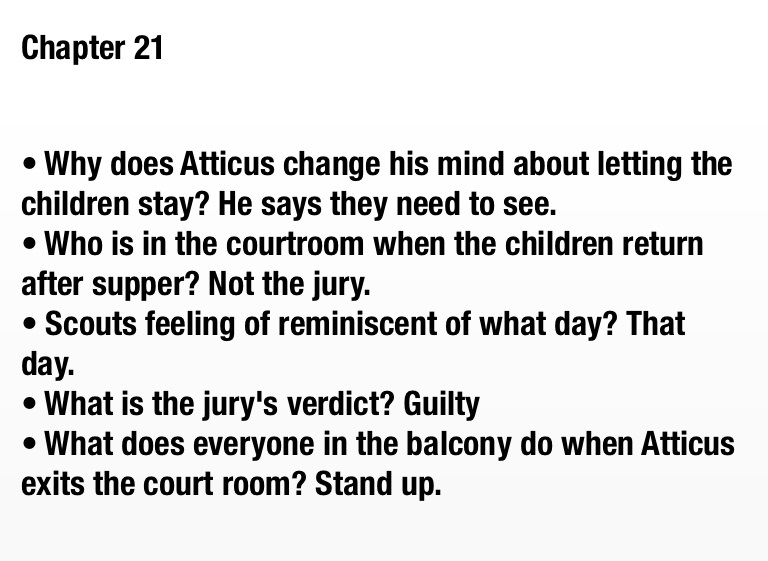 • What does everyone in the balcony do when Atticus exits the court room? Stand up.